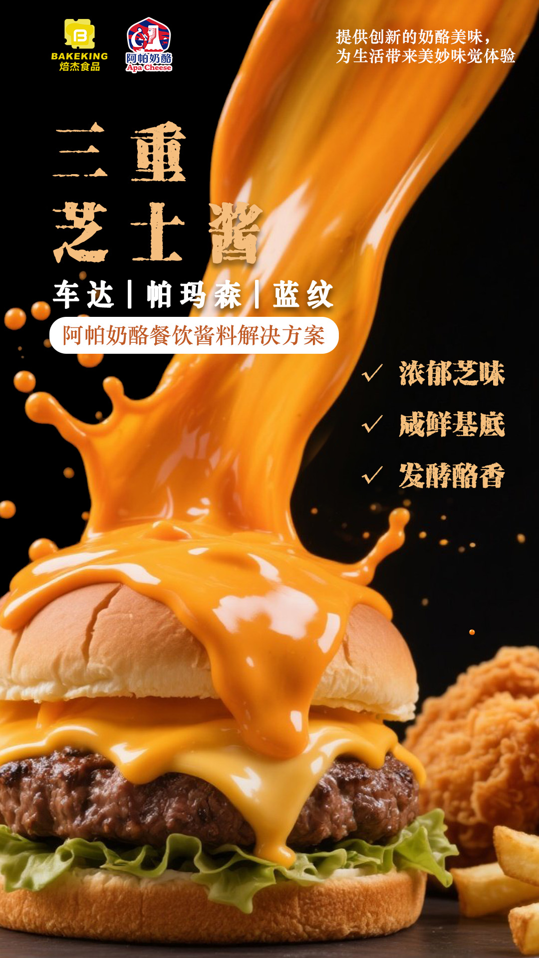 阿帕奶酪为餐饮产品提供高适配奶酪风味解决方案,多款原料精准匹配不同品类研发需求,让芝香与各类食材完美融合